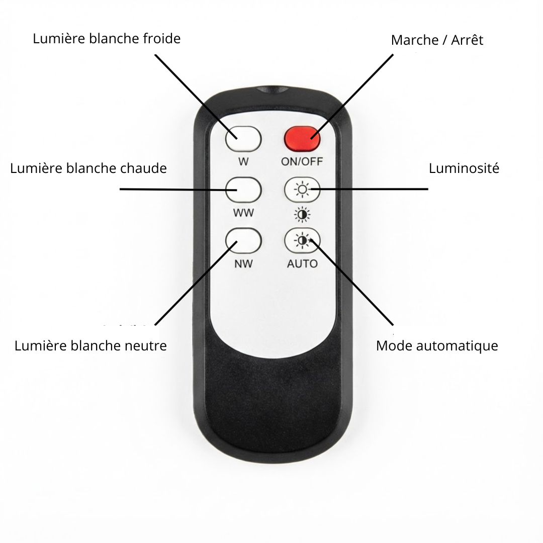 - Réglez la luminosité souhaitée grâce à la fonction dimmable.